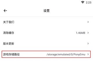 3、在此处能够看到版本更新信息以及游戏的存储路径,玩家之前的所有游戏都会被保存至:/storage/emulated/0/PonyEmu 。