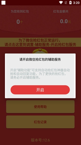 1、万能的全自动抢红包神器,只需运行该软件,然后点击开启针对微信抢红包的辅助服务即可。