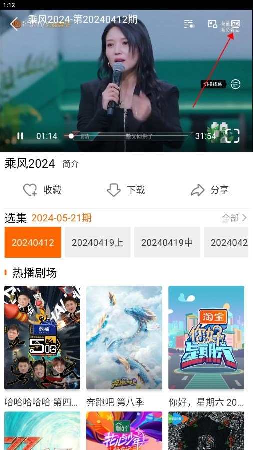 3、于播放页面点击TV图标。