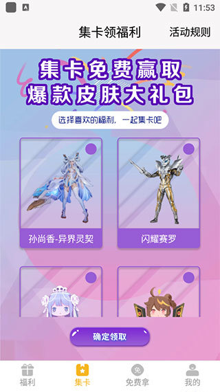 3、来到集卡页面,这里能免费领取超多精品手办。