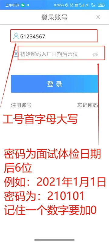 若您已有账号,可直接用工号或手机号码登录;要是没有账号,也能选择注册账号。