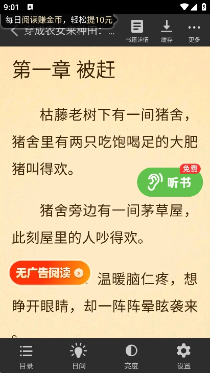 2. 在小说简介界面,任意点击屏幕,即可进入小说阅读页面。