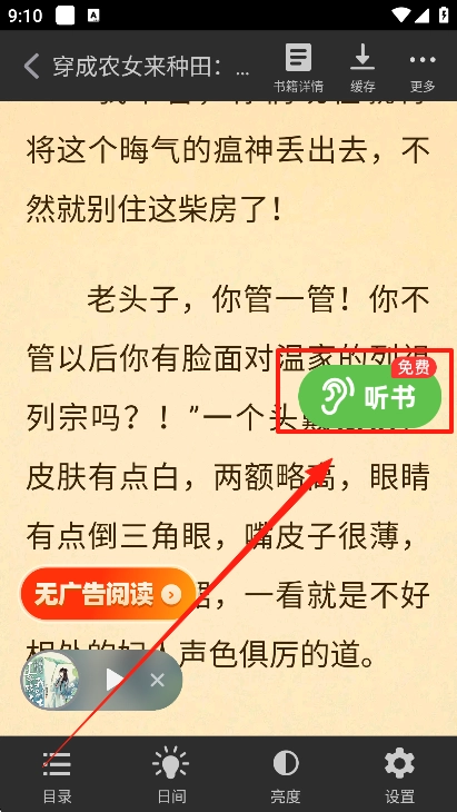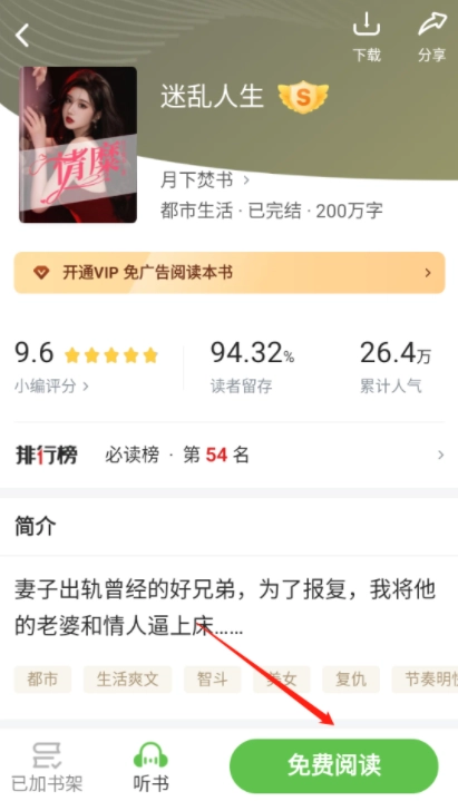 4、打开想要查看的小说资源页面后,点击“免费阅读”选项。