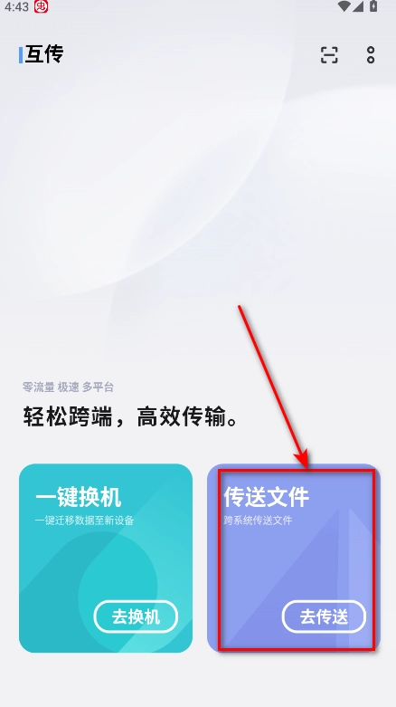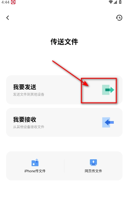 1. 第一步,在用于发送文件的手机上点击“传送文件”选项。