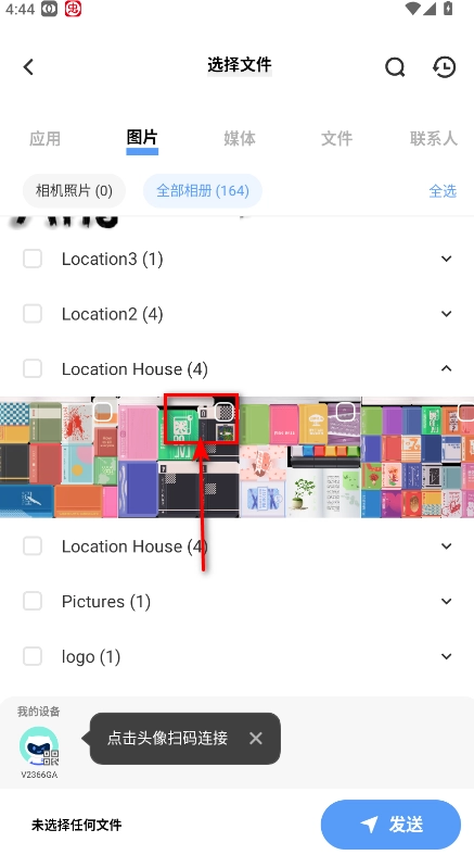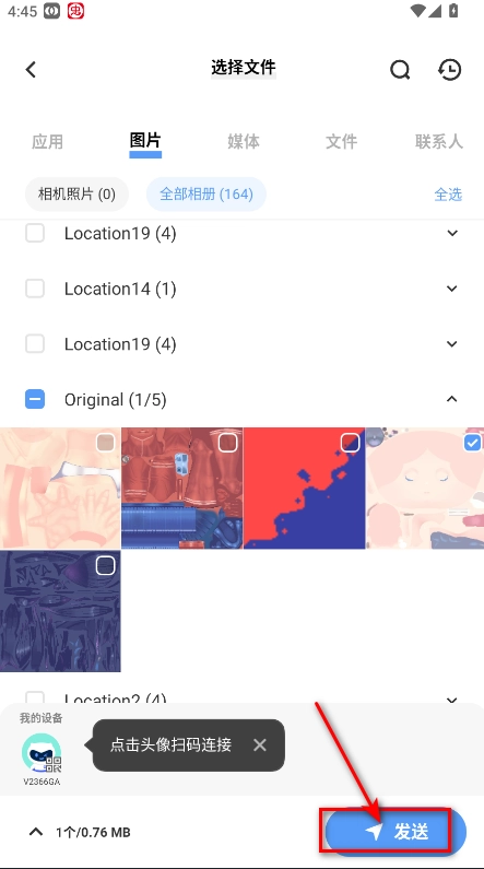 文件传输场景操作说明:进入“我要发送”页面后,点击页面左下角的头像按钮(若没有头像按钮,可选择与之类似功能的选项),此时互传App便会自动生成二维码图片。