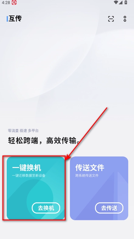 若要执行一键换机操作,可点击首页的“一键换机”图标,随即进入换机功能页面。