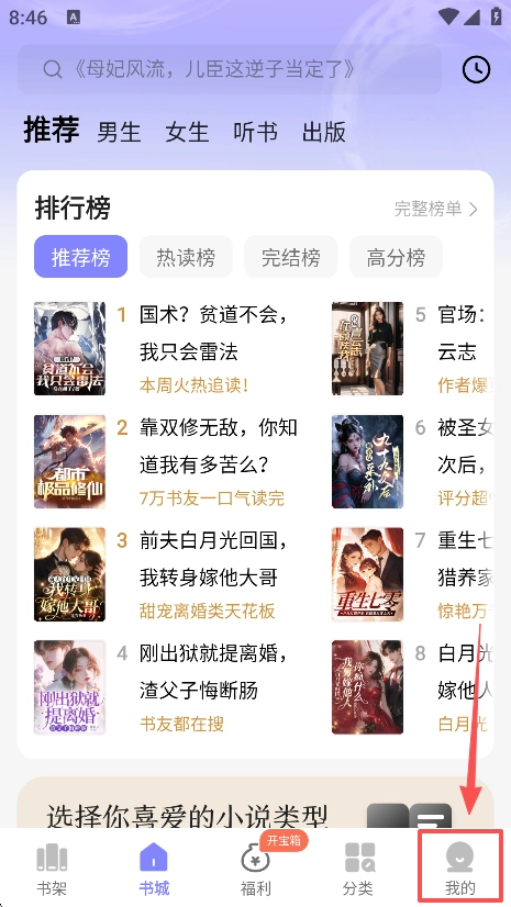 1、当你打开软件并进入书城页面时,便能看到各类小说。