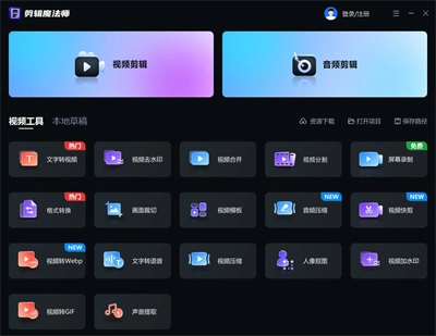 1. 启动剪辑魔法师,在其中挑选“视频剪辑”选项,然后导入待剪辑的视频文件。