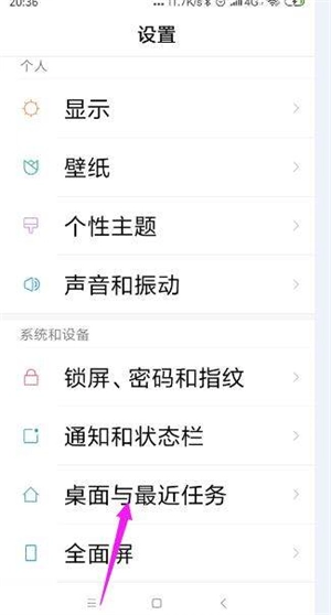 3、随后找到“桌面与最近任务”这一选项,点击后进入。