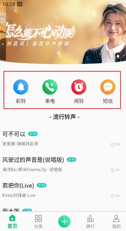 4、分类中包含各式各样的铃声。