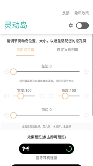 6、于应用首页,能够对灵动岛的位置与大小进行自定义设置,从而适配您的机型。