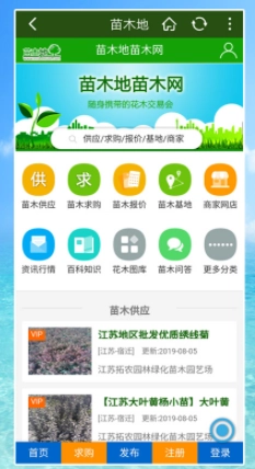 苗木地是一款由桂林思创网络有限责任公司开发打造的苗木信息服务软件,为用户提供苗木供应信息、苗木求购信息、苗木报价信息、苗木基地展示、苗木网店,以及各地苗木介绍等服务。