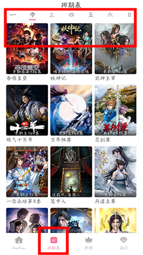 3、下方菜单栏中拥有排期表,排行榜等功能可以查看。