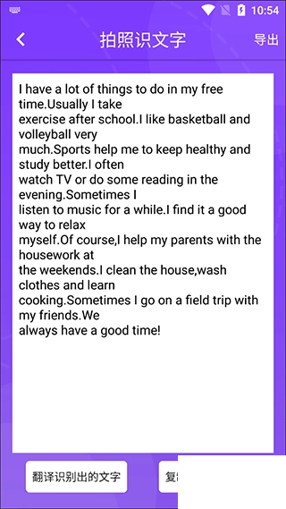 4,识别结果智能分行。分段,一键生成文档。