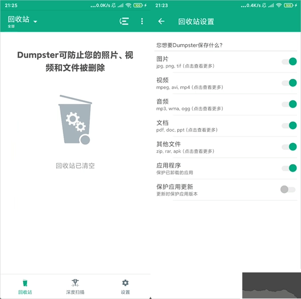 Dumpster汉化版是一款专为安卓用户打造的文件恢复软件,就像把电脑回收站搬到手机上,能快速找回不小心删掉的图片、视频、音频这些文件,支持mp3、pdf、png等多种格式,它不用给手机root就能用,要是有root权限,还可能找回安装之前删掉的文件,还能把删掉的文件上传到云端存着,省手机空间,随时能回来。操作简单,适合经常误删文件的人,感兴趣或者有需要的小伙伴就快来kk网站体验一下吧。