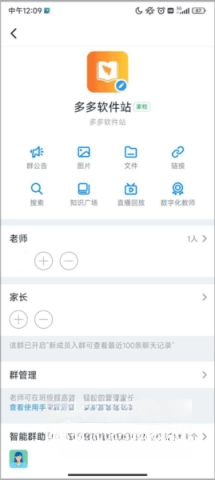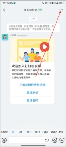 1、在叮叮课堂App首页,选择需要查看回放的群聊,进入后,点击右上角的三个点。