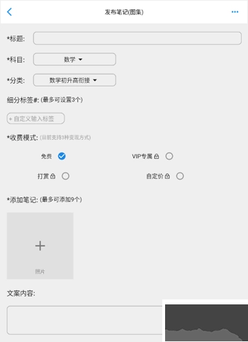 4、最后选择相应的分类科目,以及收费模式,发布通过审核后即可获得相应的收益。