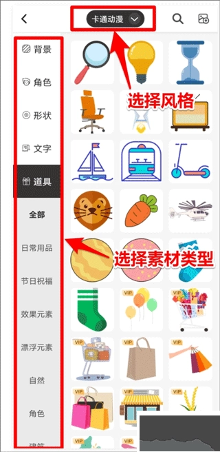 3、选择相应风格,如此在编辑器中会优先呈现对应风格的素材,更贴合创作需求