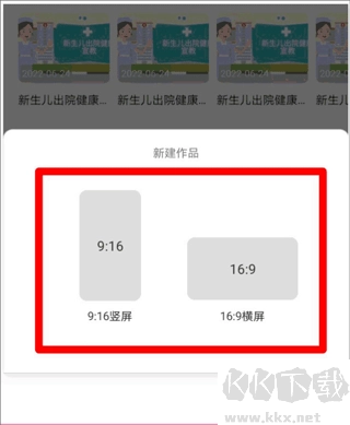 2. 选择要制作的视频尺寸,提供横屏与竖屏两种选项。