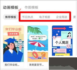 1. 进入首页后,向下滑动页面,即可看到按不同场景分类的模板。要是在现有的这些分类中,没有发现符合自己心意的模板,那么可以向左滑动分类区域,找到【更多模板】,点击后就能进入【模板中心】。