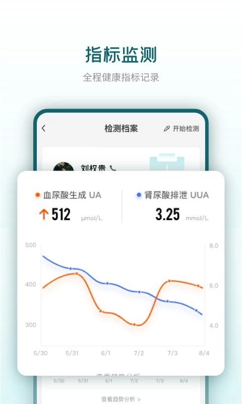 完整记录各项健康指标,涵盖血尿酸生成、肾脏尿酸排出等情况。