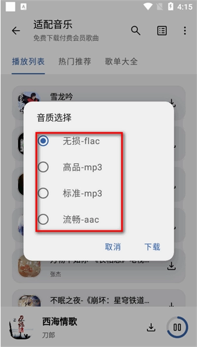 4、选择要的音质就可以直接了。适配音乐