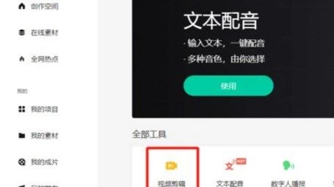 1. 进入腾讯智影平台,在界面中找到“所有工具”选项并点击,随后点击“视频剪辑”功能。