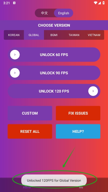 3、如下图所示,出现【Unlocked 120FPS for Global Version】则表示解锁成功!