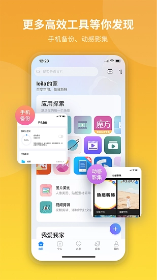 在魔盘里,用户能够借助图片美化、视频剪辑、动感影集等功能,对图片和视频展开编辑,打造出优化后的内容,并分享到家庭云圈。