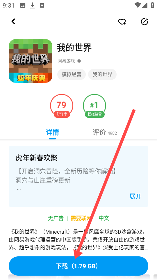 3、通过浏览或者搜索,找到自己心仪的游戏。比如以“我的世界”这款游戏来说,点击目标游戏对应的“ ”按钮,便可开始相关操作。