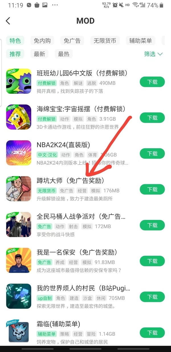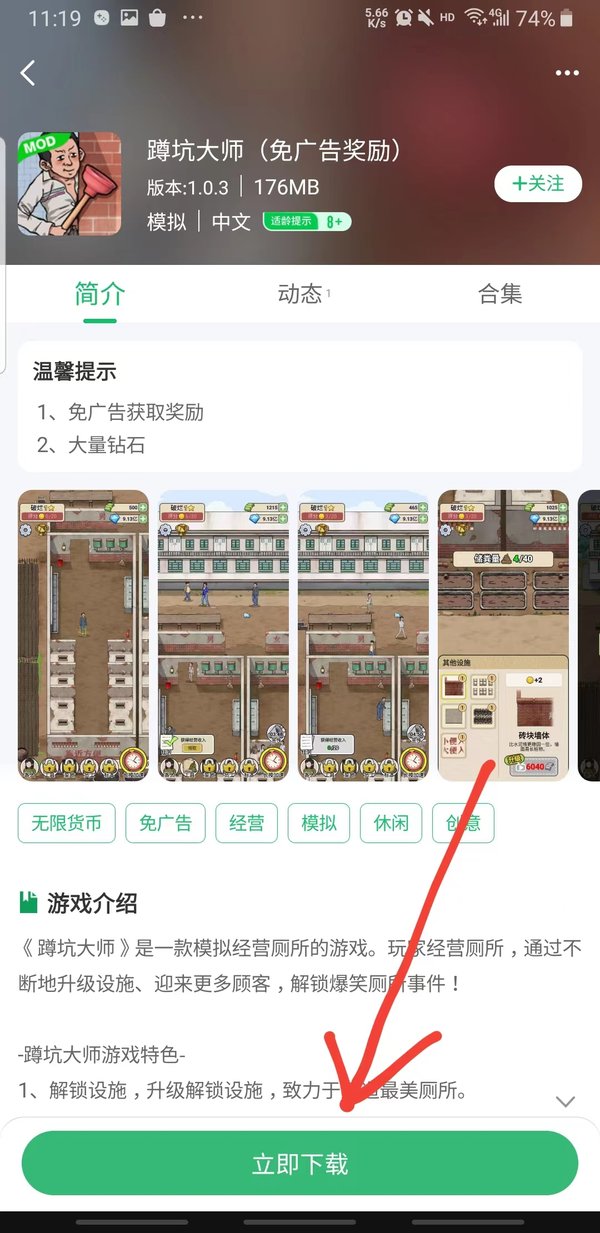 1.随意点击一款你想要的游戏,这里我们以蹲坑大师为例