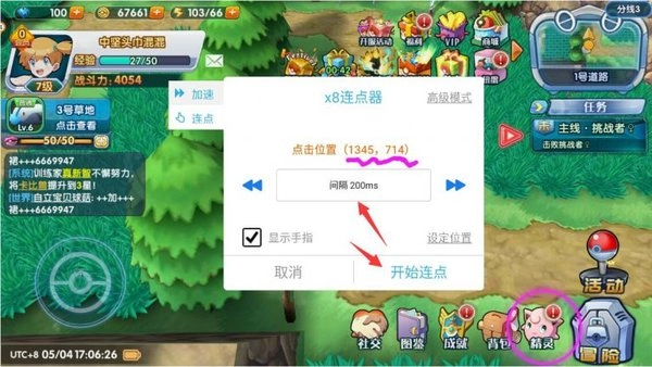 第二步,开启游戏,选中连点器插件,选定要点击的位置。