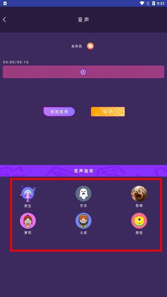 5、进入变声界面,在变声项目中挑选你心仪的音效即可。