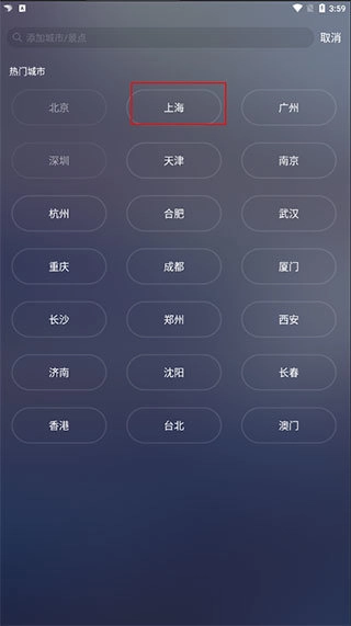 6、若想选择心仪城市,若界面上直接有该城市,直接选择即可;若界面上没有,可使用搜索功能,点击操作就能找到。