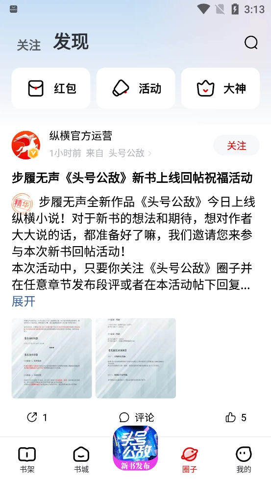 2、平台当中打造的阅读社交圈子,加入后即可与作者大神零距离接触。