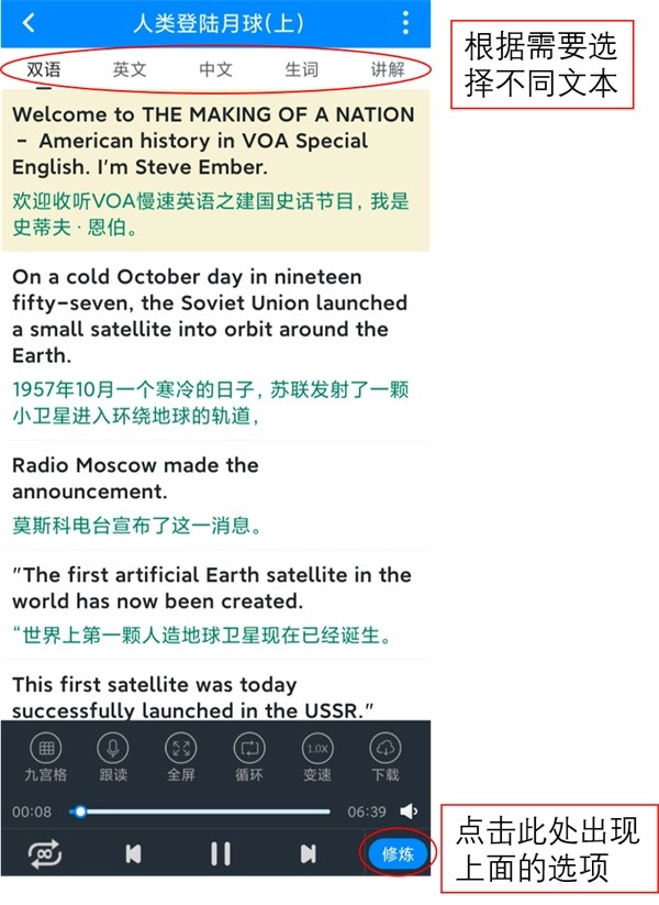 1、跟读训练帮助你掌握听力的同时训练口语语音语调。