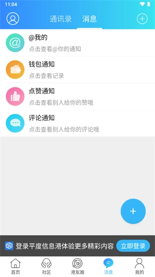 5、消息页面,从名称就可以理解,在这里能够查看各类消息通知以及通讯录等内容。