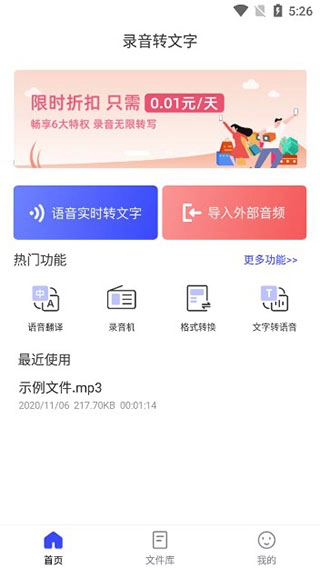 1、在本站打开录音文字提取,进入软件首界面,如下图所示: