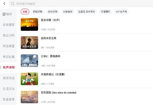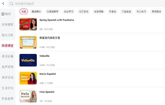 2、 兴趣学习:有声读物、名人演讲、公开课、影视英语等丰富西语资源。