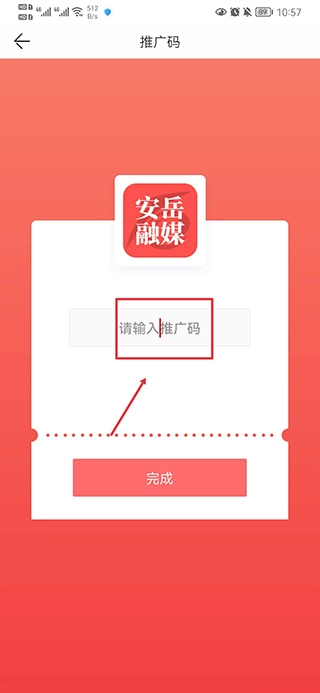 4、接着在“请输入推广码”的位置,填入你单位的推广码,点击“完成”就可以了。