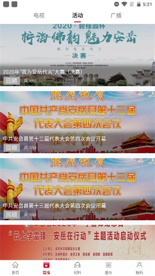 4、点击直播频道,即可查看活动、广播、电视等资讯。