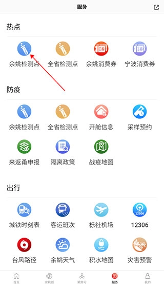 2、点击余姚检测点