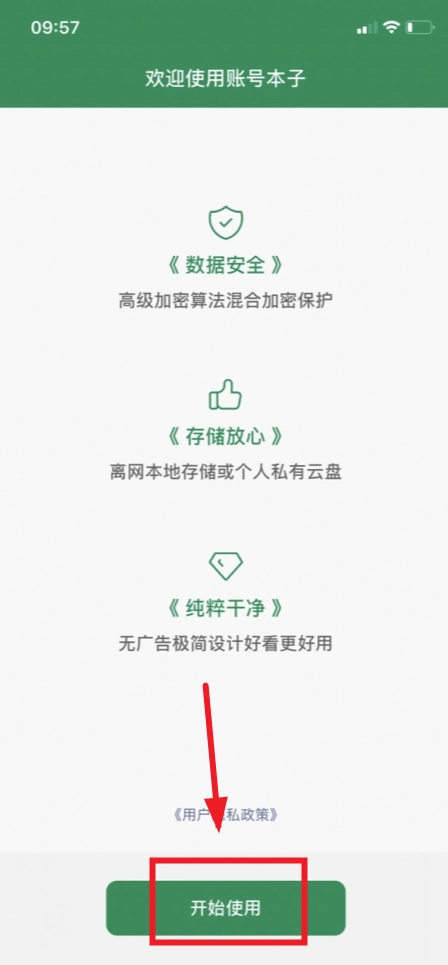 1、打开账号本子,点击开始使用