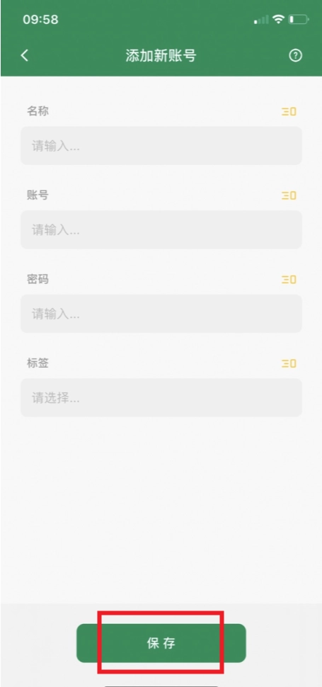 4、填入名称、账号、密码以及标签等相关信息,随后点击保存就可以了。