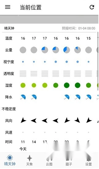 3、获取分时段的温度、湿度、风力、云量、视宁度、透明度预报