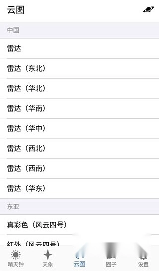 还可以查看各地方的云图显示