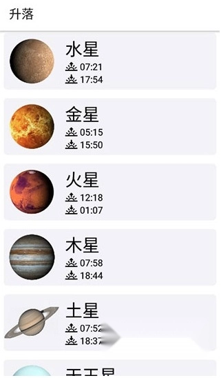 点击右上角的标识可查看各星球的升落;