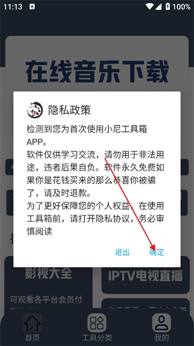 1安装小尼工具箱,打开同意相应的权限,进入首页;
