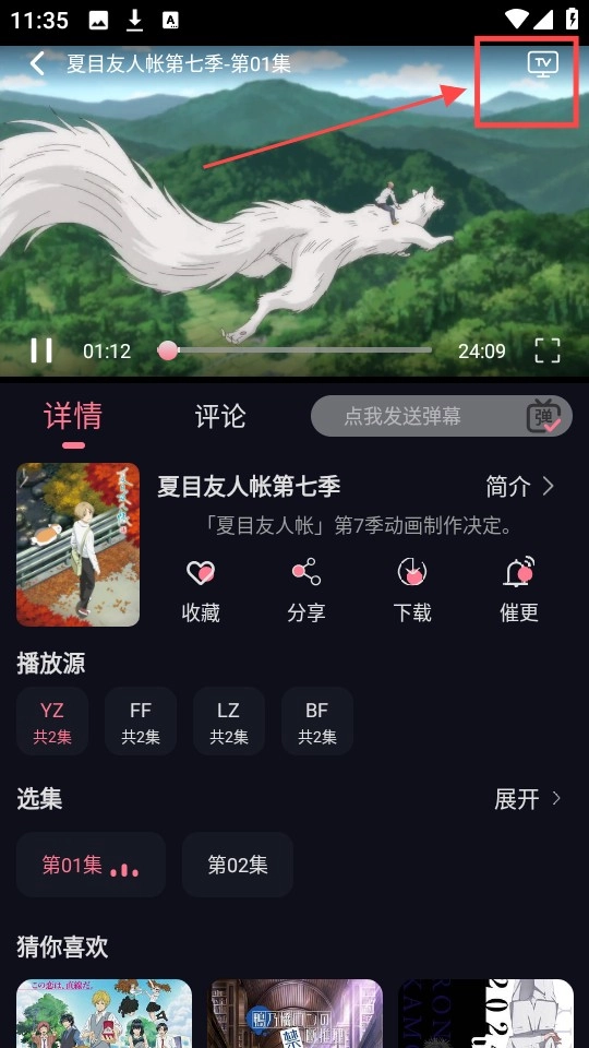 2、这里以“夏目友人帐”为例,点击右上角的“tv”标志