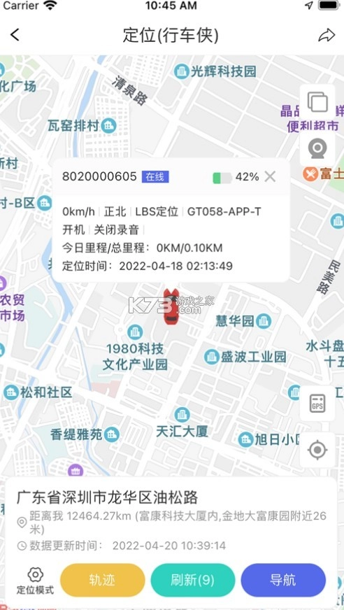 查看车辆清单,实现单车实时追踪、多车监测,回放过往轨迹,进行逆地址查询,并借助不同图标展示不同车辆状态等。